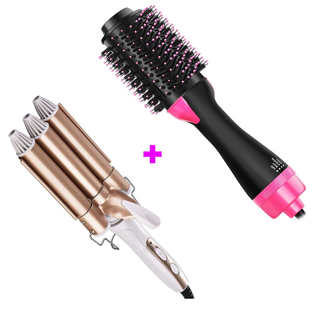 Pachet Perie Fixa Uscare, One Step si Ondulator Par, cu 3 Tuburi Ceramice