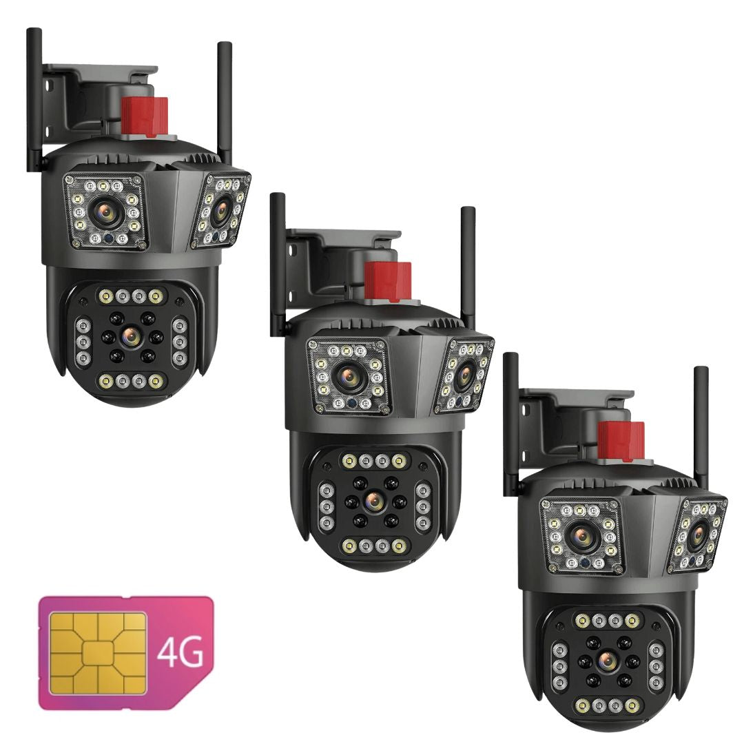 SET 3x Camere Duble 4G, 6MP Viziune Nocturna, Zoom Optic 10x, Panou Solar, IP66 + 3x Card 64GB